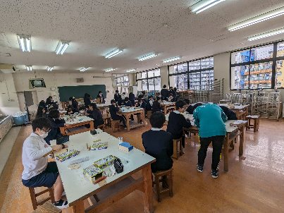 図画工作科の授業の様子です。テープカッター作りをしていました。もうすぐ全員の分が完成しそうです。完成したものは、中学生になっても自分で活用するのかな?飾っておくのかな?それとも誰かのプレゼントにするのかな。気になりますね。