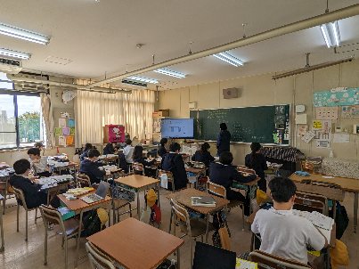 算数の授業の様子です。立体の見取り図と展開図の学習をしていました。習熟度別少人数で学習をしていました。頭の中で図立体を組み立てる、難しい事ですががんばりましょう。学年が進むと、その力が必要とされますから。