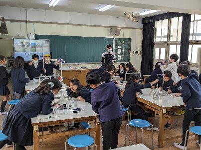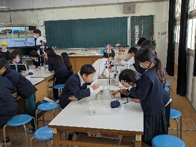 理科の授業の様子です。理科室で水を冷やす実験をしていました。水を氷で冷やすとどうなるか?食塩水にするとどうなるか?興味が尽きませんね。皆さんもその実験をした覚えがあるのではないですか。