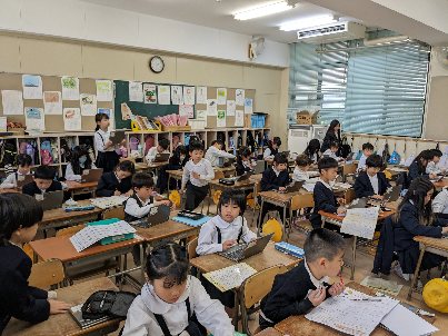 情報教育の学習の様です。パソコンを使って、ドリルをしていました。パソコンのドリル機能は、自分のペースで進めることができます。毎日継続してがんばりましょう。