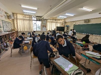 国語の授業の様子です。テストの返却をしていました。間違いはきちんと直しておきましょう。特に漢字と語句の問題はしっかりと覚えておきましょう。