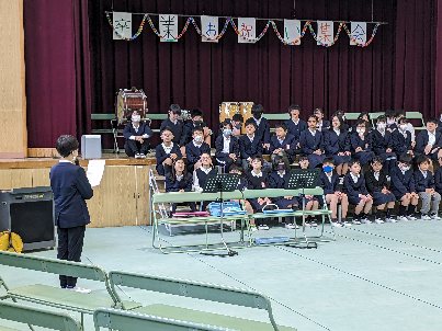 校長先生のおはなしの後、終わりの言葉で、楽しかったお祝い集会が終わりました。