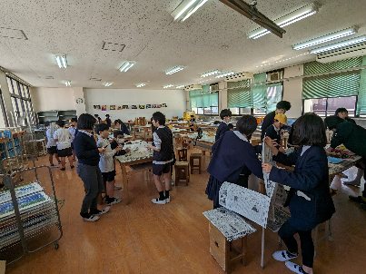 図画工作科の授業の様子です。図工室で版画の刷り上げをしていました。5年生は多色刷りの版画をします。カラーで仕上がった作品の出来はどうですか。思い通りに仕上がりましか?