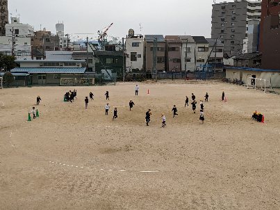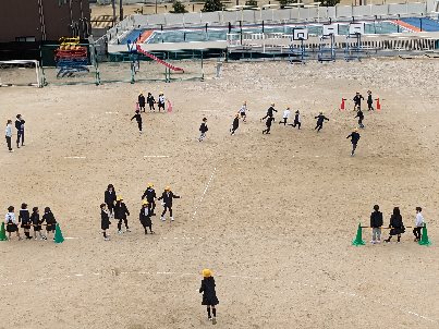 運動場でお楽しみ会をしていました。みんなで楽しく、体を動かしていました。