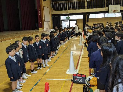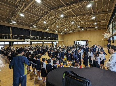 始業式に続いて、対面式を行いました。1年生をみんなの拍手と手拍子で迎えました。緊張しながらも正面に立って、顔合わせをしました。みんなで元気よく朝の挨拶を行いました。