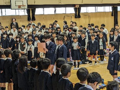 代表の児童が、歓迎の言葉を発表していました。1年生からは、大きな声でお礼の言葉を発表しました。みんなで仲よく中道小学校を盛り上げていきましょう。
