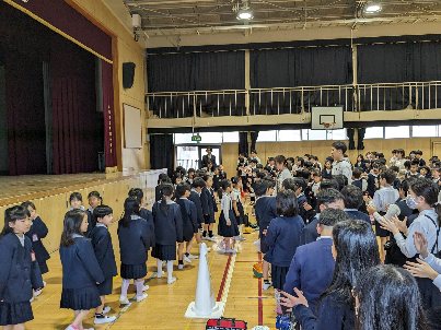 1年生は、みんなの拍手と手拍子に送られて教室に戻っていきました。