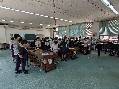 音楽の授業の様子です。「つばさをください」の合唱をしていました。とってもきれいな声で歌っていたので、思わず聞きほれてしまいました。さすが6年生です。
