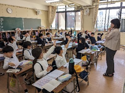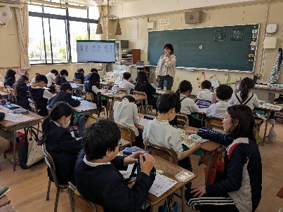 国語の授業の様子です。漢字テストの丸つけをしていました。全問正解したと多くの子ども達が手を上げていました。素晴らしいですね。これからも全問正解を目指してがんばりましょう。