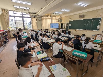 国語の授業の様子です。「風のゆうびんやさん」の学習をしていました。お話を読んだ感想をノートに書いていました。