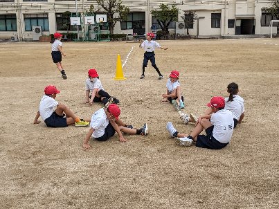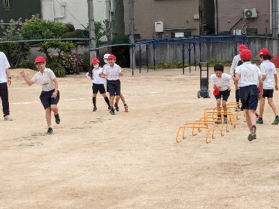 体育の授業の様子です。体づくりの運動をしていました。敏捷性を高めたり、体をほぐしたりしていました。全ての運動能力に通じる大切な動きですね。がんばりましょう。