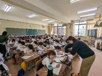 算数の授業の様子です。かけ算の100マス計算に挑戦していました。ランダムに計算するので九九の力を高めるには、必要ですね。5分でタイマーがセットされました。がんばりましょう。