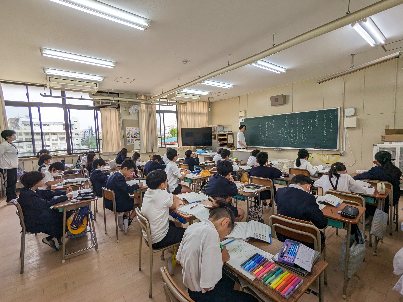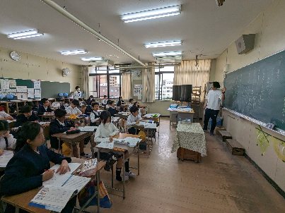 国語の授業の様子です。「おにぎり石の伝説」の学習をしていました。場面の様子を読み取っていました。子ども達の集中して取り組む姿は素晴らしかったです。