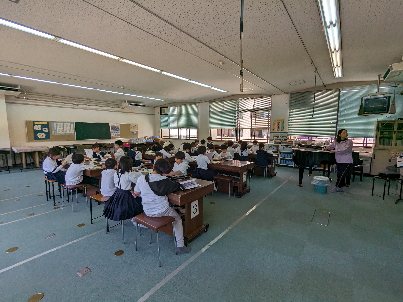 音楽の授業の様子です。「春の小川」を歌っていました。自分も2年生の時に歌っていたことを思い出しました。歌詞にメダカが出てきますが、近くの小川にはいなかったので、残念な気持ちでいっぱいだったことも思い出しました。