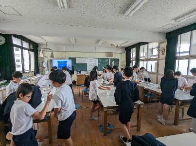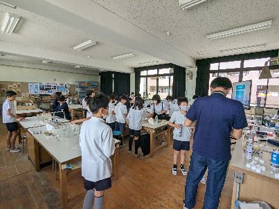 理科の授業の様子です。理科室で空気の成分についての実験をしていました。酸素や二酸化炭素を使います。爆発することはありませんが、十分に気をつけて実験を行いましょう。