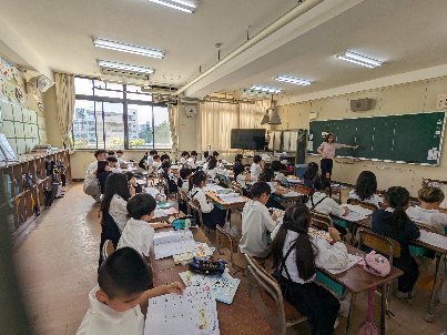 算数の授業の様子です。ドリルの計算問題にチャレンジしていました。自分のペースで問題を解いていました。時間内に全部解けるといいですね。