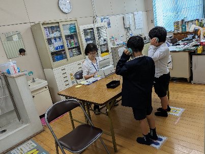 聴力検査の様子です。静かに検査を受けていました。特に、検査を待つ姿勢がすごくよかったです。さすが3年生です。中道の子ども達は学年が上がる度に成長をしていることを感じます。素晴らしいです。