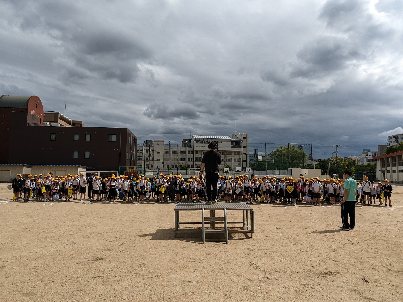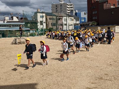 今日は、集団下校をします。みんなで協力して危険な場所や通行の多い道路などを確認しながら帰ります。また非常時には、集団下校をするので、その訓練も兼ねています。気をつけて帰りましょう。