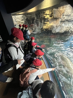 見学の様子です。水の上も水の中の様子も見ることができます。幻想的ですね。
