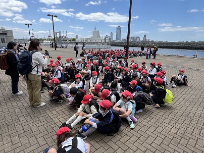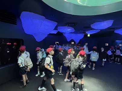 最後にクラゲなどの展示を見て、外で集合しました。この後お弁当を食べます。楽しみです。晴れて暖かくなりよかったです。