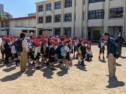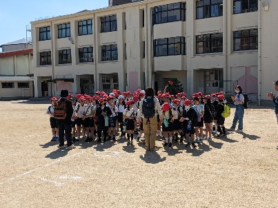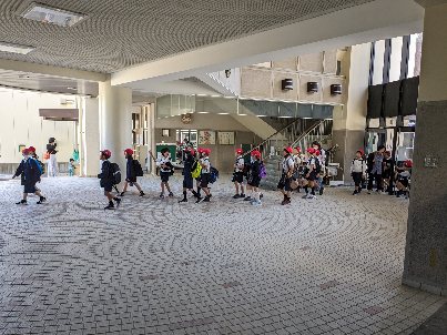 予定より少し早く学校に着きました。みんな元気です。お疲れ様でした。今日は、疲れているだろうから、お風呂に入って早く休みましょう。明日も元気に登校しましょう。
