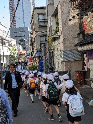 いい天気です。天王寺動物園に向かって学校を出発しました。