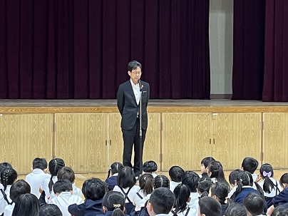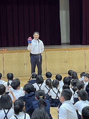 続いて、区長さんから、スポーツテストで東成区記録が出たら表彰をするので、がんばろうとというお話と、大阪関西万博のお話がありました。