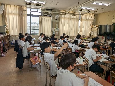 国語の授業の様子です。説明文「イースター島にはなぜ森林がないのか」の学習をしていました。段落の読み取りをしていました。この単元を習った覚えのある方もおられるのではないでしょうか。教科書には、19年前の2005年から登場しています。