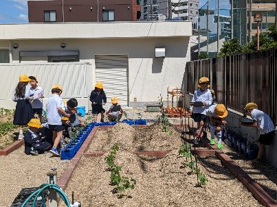 生活科の授業の様子です。昨日植えたミニトマトの観察をしていました。タブレット端末を使って写真を撮っていました。毎日写真を撮って、成長の様子を記録すると比較しやすいですね。がんばりましょう。