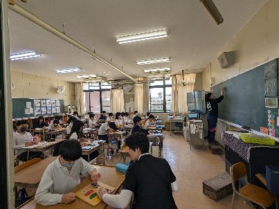 算数の授業の様子です。分数のかけ算について考察していました。かける数と積の関係が1より大きいのか、小さいのか、それとも等しいのかを計算しながら確かめていました。このことを押さえておけば、計算間違いが減りますね。がんばりましょう。