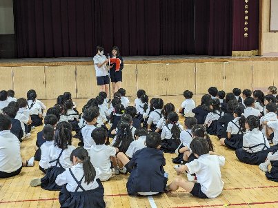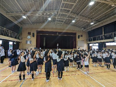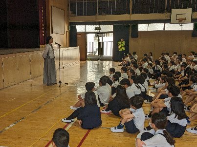 講堂で、全校朝会を行いました。まず初、運動委員会の姿勢ストレッチを行いました。 続いて、校長先生から新ソンセンニムの紹介がありました。続いて、看護当番から先週の反省のお話がありました。