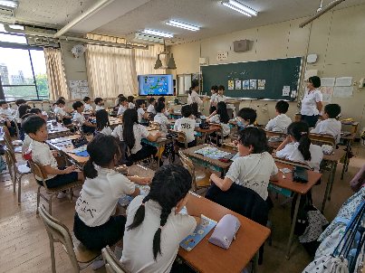 外国語活動の授業の様子です。天気についての英会話を楽しんでいました。毎朝英語で聴き合いをすると、定着しますよね。明日からさっそくチャレンジしてみましょう。