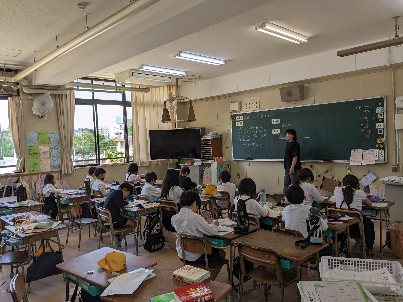 算数の授業の様子です。習熟度別少人数で学習していました。文章題の問題を図を使って考えていました。うまく活用すると、式を立てやすいです。しっかりと考えましょう。