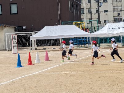 体育の授業の様子です。かけっこの練習をしていました。運動会で走る順番で練習していました。当日までもう少し時間があるので、早く走れるようにしっかり練習しましょう。