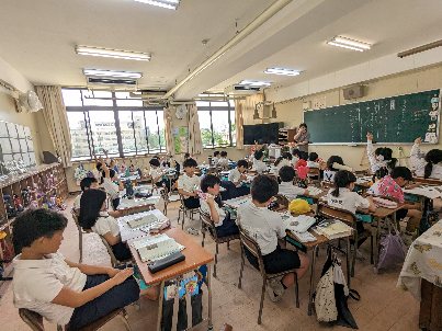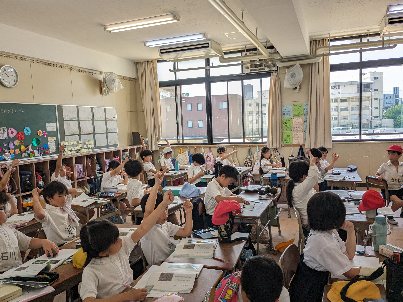 国語の授業の様子です。「自然のかくし絵」の段落ごとの内容を読み取っていました。友達の発表に多くの子が賛同の挙手をしていました。いい光景ですね。
