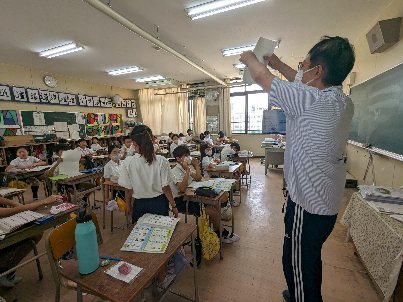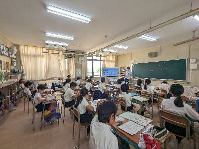 英語の授業の様子です。プリントに書かれた質問に、答えていました。書いてある意味を理解し、それに対して答えを書かないといけません。的確に答えられるようにがんばりましょう。