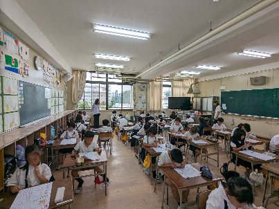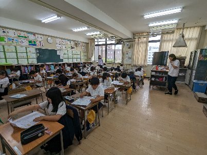 算数の授業の様子です。テストをしていました。みんな集中して取り組んでいたので、教室は静まり返っていました。みんないい点数が取れるといいですね。