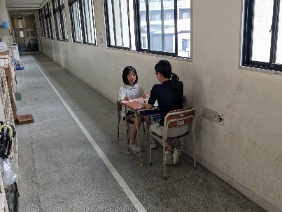 英語の授業の様子です。1人ずつ聞き取りのテストをしていました。緊張しながらもがんばっていました。マンツーマンのテストは、何度もやって慣れることも必要ですね。将来いろいろな場面で受けないといけませんからね。がんばりましょう。