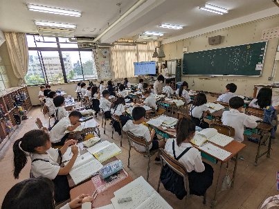 国語の授業の様子です。物語文の読み取りをしていました。場面の様子から、登場人物の心情を考えていました。子ども達は主人公に寄り添って、考えを発表していました。
