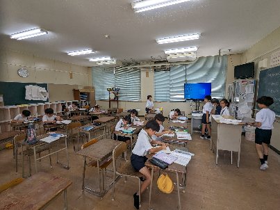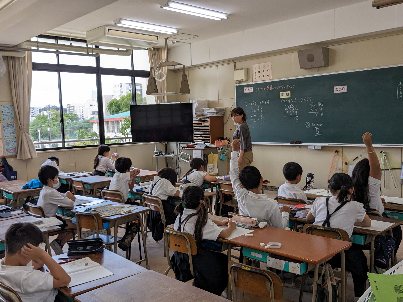 算数の授業の様子です。習熟度別少人数で学習していました。4けたのたし算のひっ算の仕方について考えていました。桁数が増えてもやり方を理解していれば解くことができます。今のうちに、しっかり身につけておきましょう。