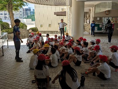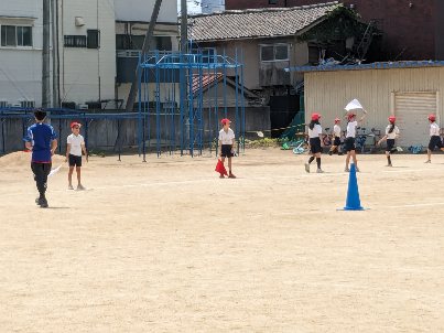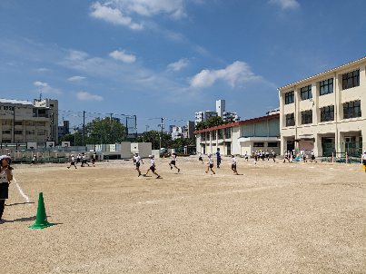 体育の授業研究会を運動場で行いました。短距離走のダッシュの練習をしていました。途中で給水タイムも摂りながら、チームでがんばっていました。繰り返し練習することでいいダッシュの仕方が身につきます。タイムは必ず縮むので、がんばりましょう。
