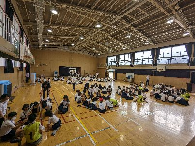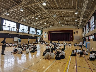 講堂で児童集会を行いました。今日は、イントロ当てクイズでした。8問もありましたが、多くの班が全問正解で、称賛されていました。阪神タイガースの歌〈六甲おろし)もありました。