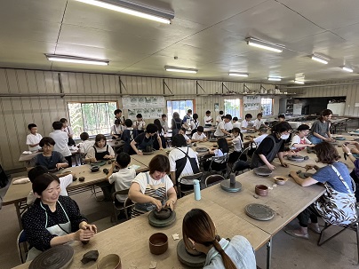 作陶の様子です。みんな思い思いにろくろを回しています。何ができるのでしょうか。今が一番楽しい時かもしれませね。