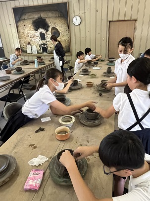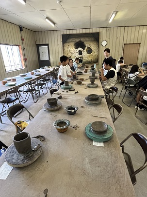 作陶の様子です。終盤に近づき完成した作品もあります。どの作品もいい出来映えですね。焼き上がりが楽しみですね。