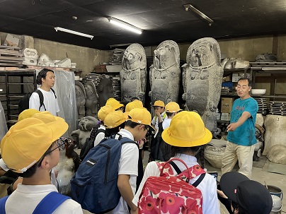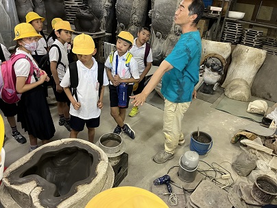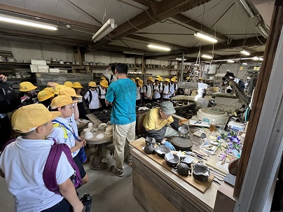 食事を終えて宗陶苑を見学しています。工房での作業の様子です。1枚目に移っている大狸が、登り窯で焼ける一番の大きな作品です。