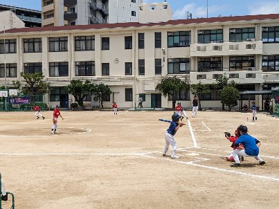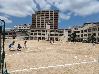 Bチームの試合の様子です。中道小と宝栄小が連合チームで東中本小と試合をしました。協力してよくがんばりました。