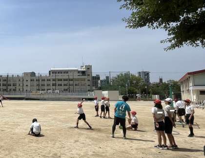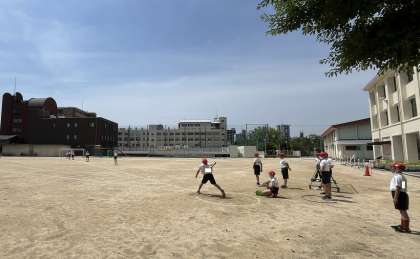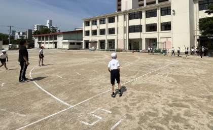 今日の午前中、社会見学の4年生を除く児童が、体力テストのソフトボール投げの計測をしました。