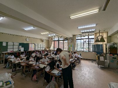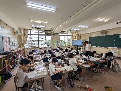 国語の授業の様子です。人物やものの様子を表す言葉の学習をしていました。雨の降り方にもいろいろありますね。それを表す言葉は、日本語にはいっぱいあります。「ぽつぽつ」「しとしと」「ざあざあ」等ですね。いろいろな表し方を調べて、たくさん使えるようにしましょう。これも国語力を高めることになります。