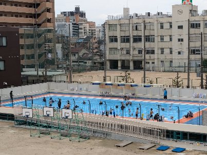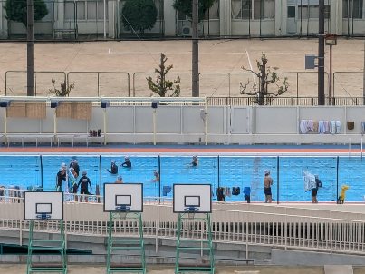 曇り空でしたが蒸し暑い中、プール開きを行いました。まだ水温も低く少し冷たい中でしたが、元気に入水していました。どれくらい泳ぐのを目標にするのかを決めて、9月のはじめまでがんばりましょう。