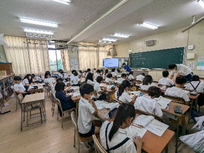 算数の授業の様子です。図形の学習をしていました。垂直や平衡の書き方を学んでいました。図形は、正確に書くことが求められています。しっかり描き方を覚えておきましょう。
